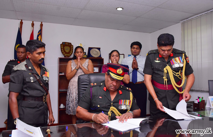 He formally left his signature for an official document and signified the acceptance of his new office before a representative gathering of Officers and Other Ranks. After a simple tea arrangement, he addressed all Officers and Other Ranks serving the SFHQ-Central. He succeeded Major General Laksiri Waduge who retired from service a few days ago.