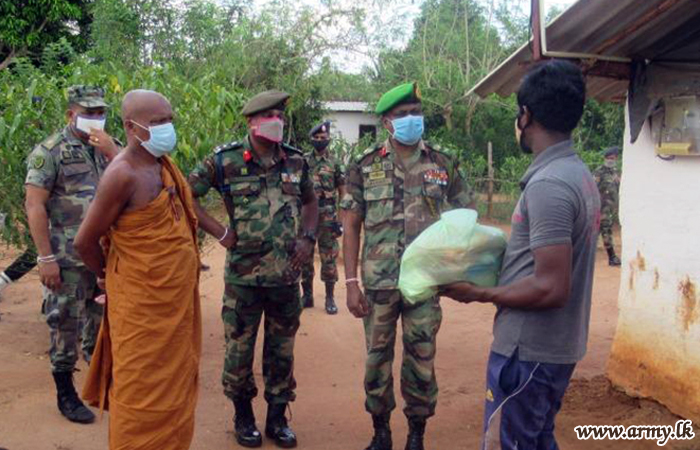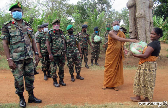 To be in line with the guidelines given by Lieutenant General Shavendra Silva, Chief of Defence Staff and Commander of the Army, 621 Brigade troops on the directions of the General Officer Commanding, 62 Division, Major General J.M.U Dhammika Jayasinghe, Commander, 621 Brigade, Brigadier A.P Wickramasekara, together with the 62 Division and 621 Brigade Civil Affairs Officers and 17 Sri Lanka National Guard (SLNG) troops organized the distribution.