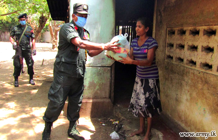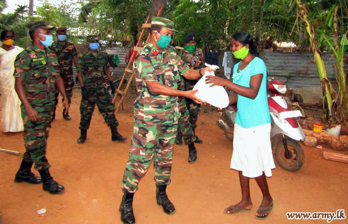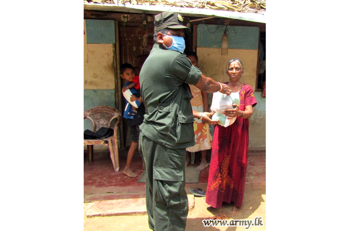 Sri Lanka Army troops in the Jaffna peninsula organized one more round of distribution of dry ration packs among needy families residing in Ilavalai, Urumpirai, Uduvilan and Chunnakam areas on the directions of Major General Ruwan Wanigasooriya, Commander, Security Forces - Jaffna on Wednesday (15).