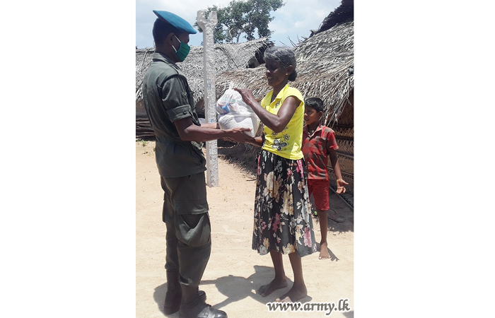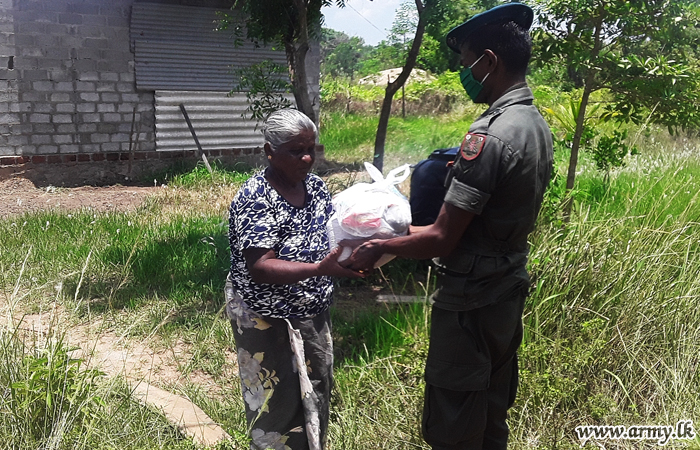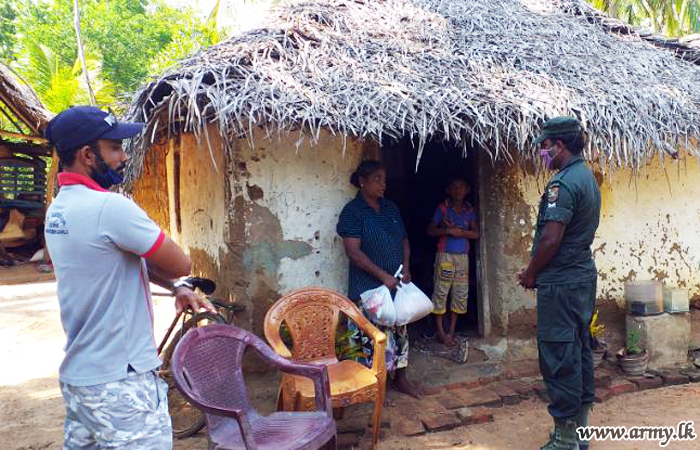 Brigadier Dammika Dissanayake, 143 Brigade Commander, together with his troops and government officials joined the distribution programme after visiting doorsteps of those recipients. |