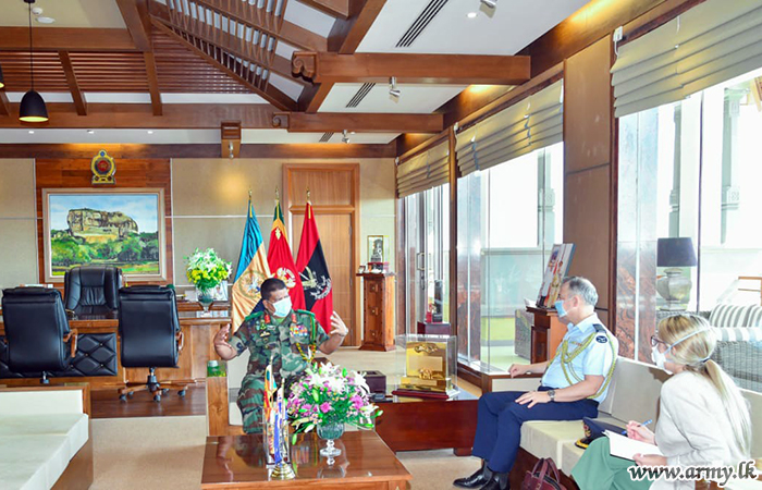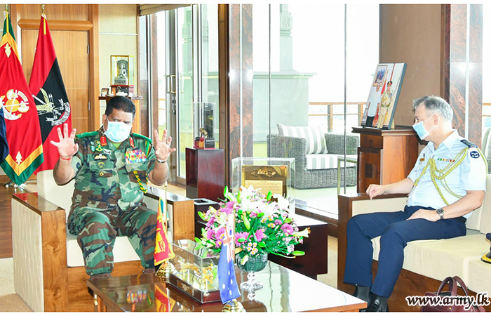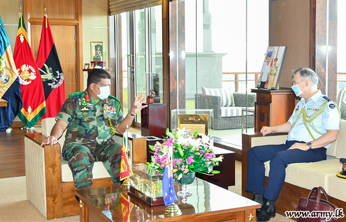 Defence Attaché of the High Commission of Australia in Sri Lanka, Group Captain Sean Unwin paid a courtesy call on the Chief of Defence Staff and Commander of the Army, Lieutenant General Shavendra Silva on Friday (17) at the Army Headquarters.