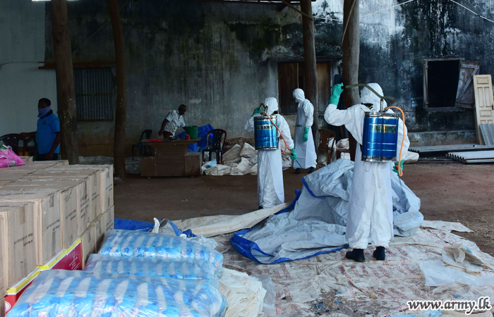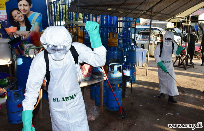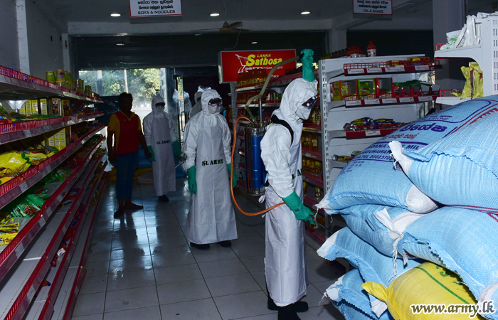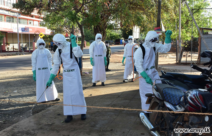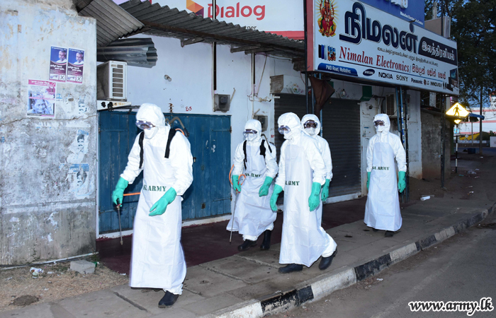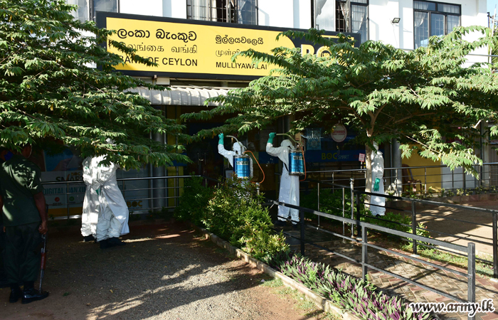 A group of specially-trained troops of the 9 Sri Lanka Engineers (SLE) under command to the Security Force Headquarters - Mullaittivu disinfected the general areas from Mullaittivu to Mulliavalai on Friday (17) for the betterment of the general public.