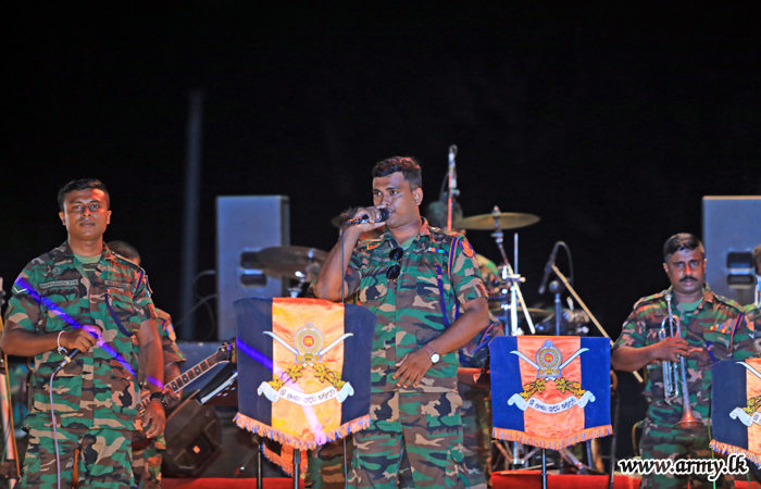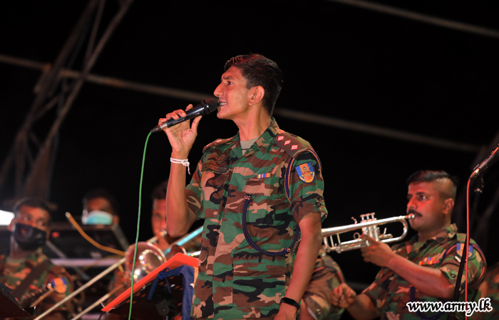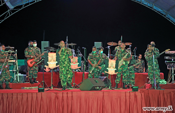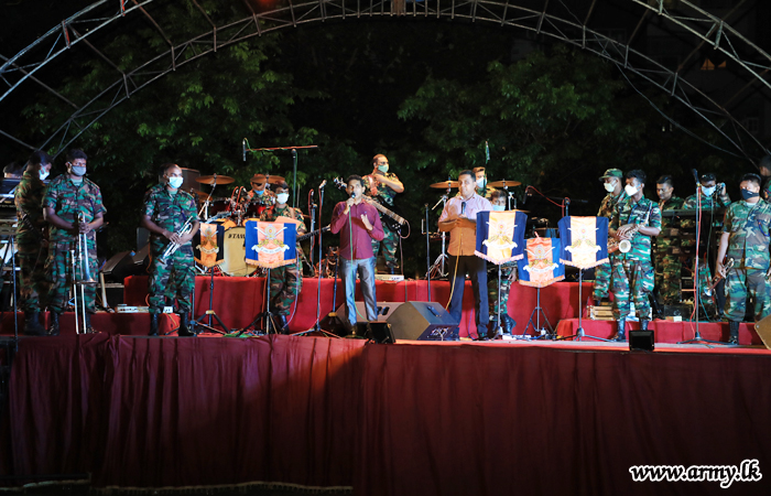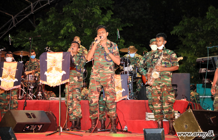 Members of the Army Beat Group on the guidelines given by Lieutenant General Shavendra Silva, Chief of Defence Staff, Commander of the Army and Head of the National Operation Centre for Prevention of COVID -19 Outbreak, staged one more musical show near the Anderson Flats, Thimbirigasyaya on Sunday (19) amid cheers of those occupants.