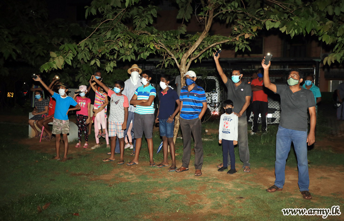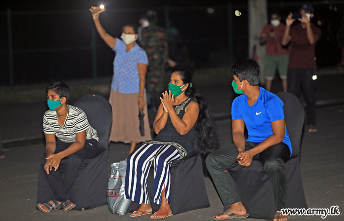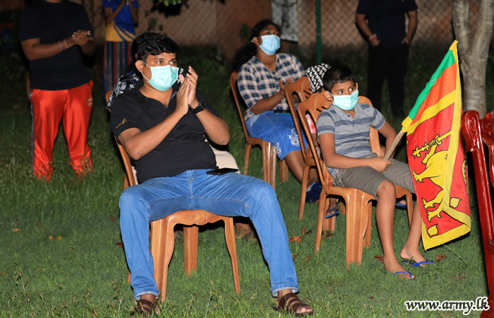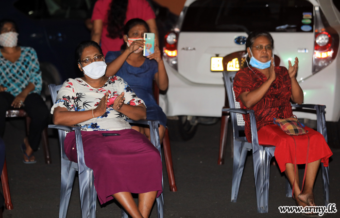 Meanwhile, musicians of the Army Beat Group on the guidelines given by Lieutenant General Shavendra Silva, Chief of Defence Staff, Commander of the Army and Head of the National Operation Centre for Prevention of COVID -19 Outbreak, staged one more musical show near the Lakeview residence Flats, Angoda on Monday (20) amid cheers of those occupants.