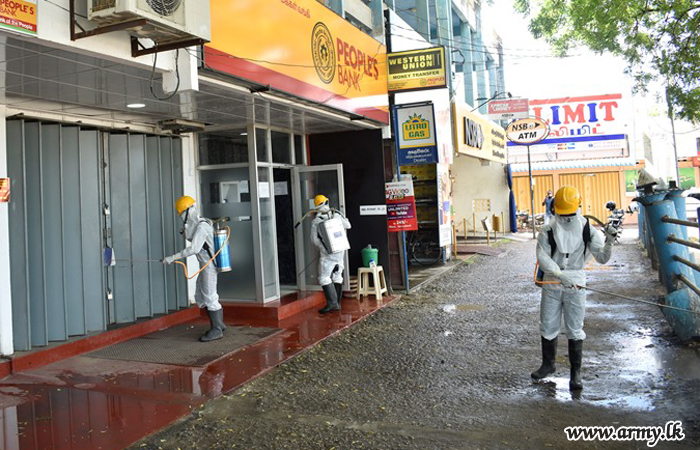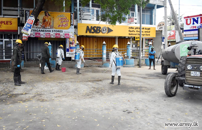 The disinfection arrangement, attended by several Army teams covered Nallur, Chunnakamam, Thirunalveli, Arali, Valikamam, Chankanai, Thelippalai and a few other areas. This was one more community-oriented project, meant to prevent transmission of the deadly COVID-19 virus further in the peninsula.