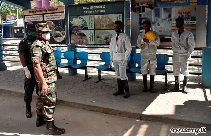 Jaffna Troops Sterilize Public Places to Contain Further Spread
