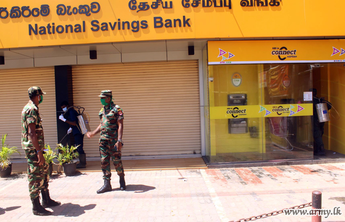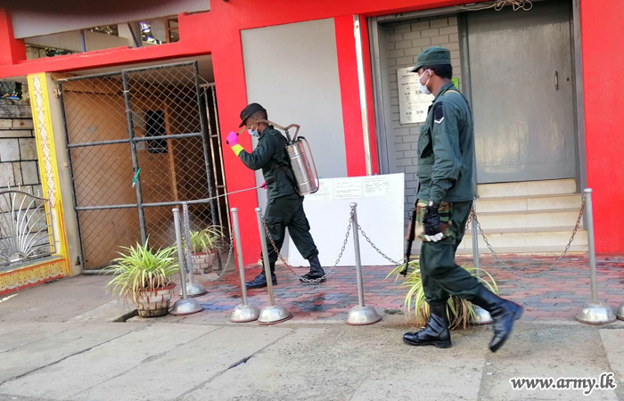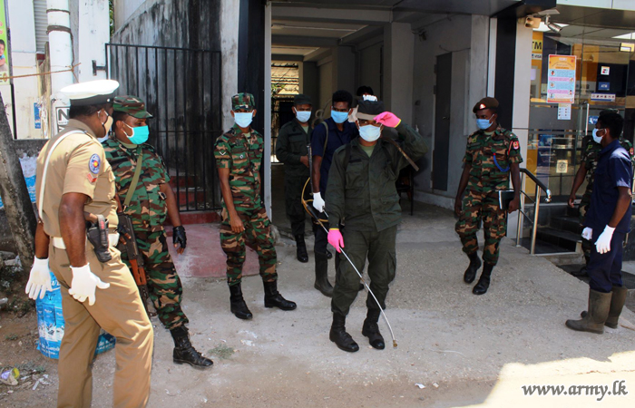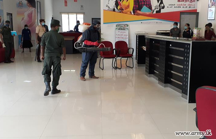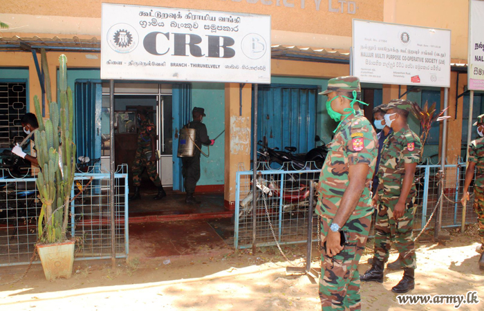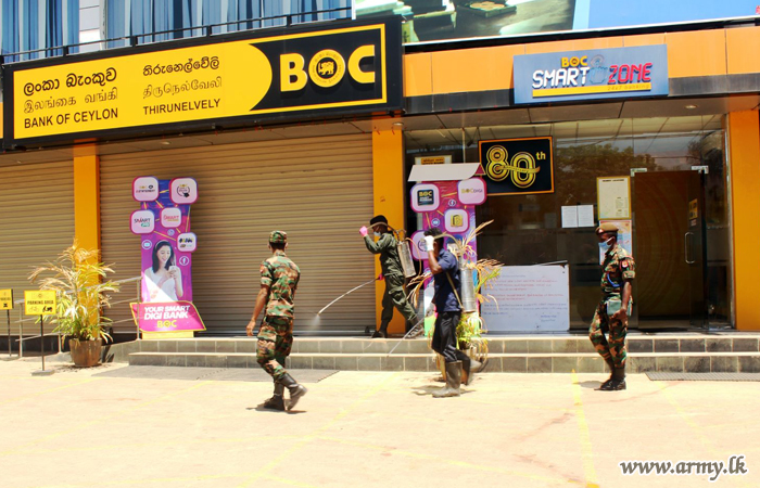 In the meantime, troops of the Security Force HQ-Jaffna (SFHQ-J) for the consecutive third day on Tuesday (21) carried out another disinfection programme covering state and private banks, railway stations, rural hospitals, bus stands and common public places in to arrest spread of the COVID-19.