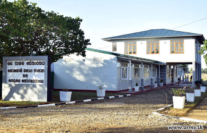 The newly-erected Corporals' Club and Other Ranks Mess complex of the 66 Division of the Security Force HQ - Kilinochchi was inaugurated recently during a simple ceremony, attended by a representative gathering, adhering to strict health precautions against the spread of COVID-19 virus.