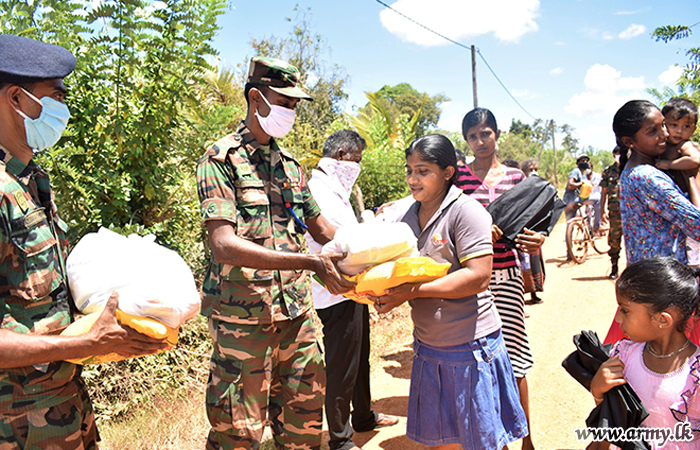 Troops of the 623 Brigade of the 62 Division HQ of the Security Force HQ-Wanni on Monday (20) assisted the distribution of dry ration packs among 300 Families, residing in remote areas of Weherathenna in the Mullaittivu district. The sponsorship for those supplies was extended to the troops by the former cricketer Mr Roshan Mahanama and his foundation at the request of the 623 Brigade Commander.