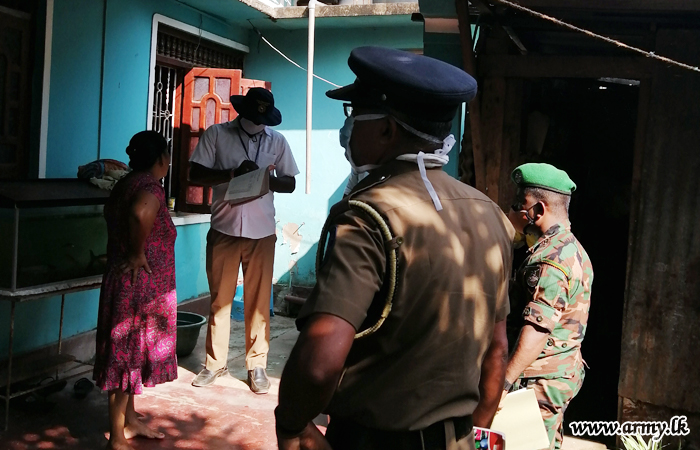 2 Gajaba Regiment (GR) troops of the 221 Brigade and the 22 Division troops under the Security Force HQ- East in coordination with the office of the Medical Officer of Health (MOH) for Trincomalee supported a mobile house to house inspection for Dengue mosquito breeding grounds covering the Maniyaveli Grama Niladari sector on Monday (13).