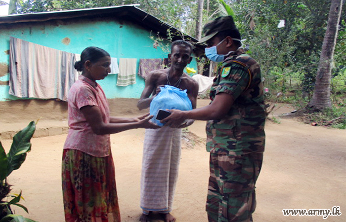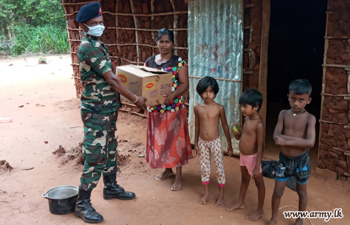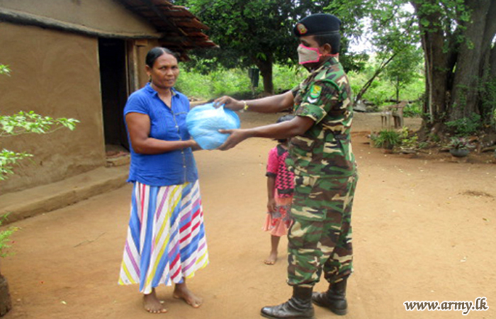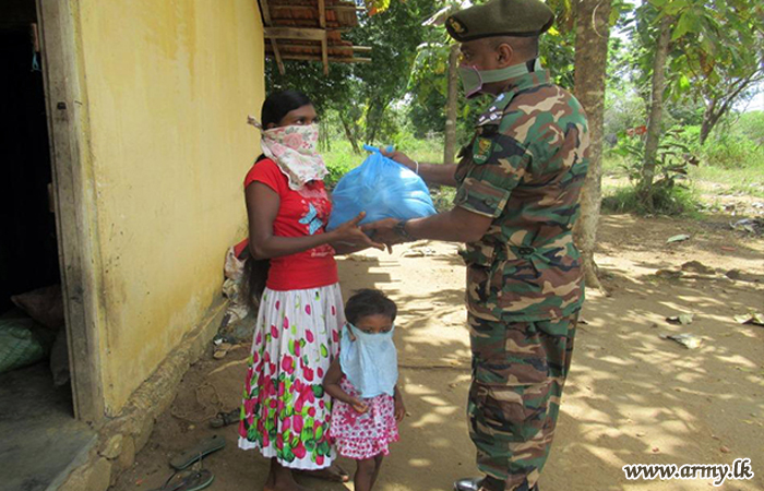 62 Division troops of the Security Force HQ - Wanni distributed dry rations among 75 families, resident in remote areas of Galkadawala, Urewa, Mawathawewa and Kochchikawewa on the directions of Major General Rohitha Dharmasiri, Commander Security Forces - Wanni on Tuesday (21).
