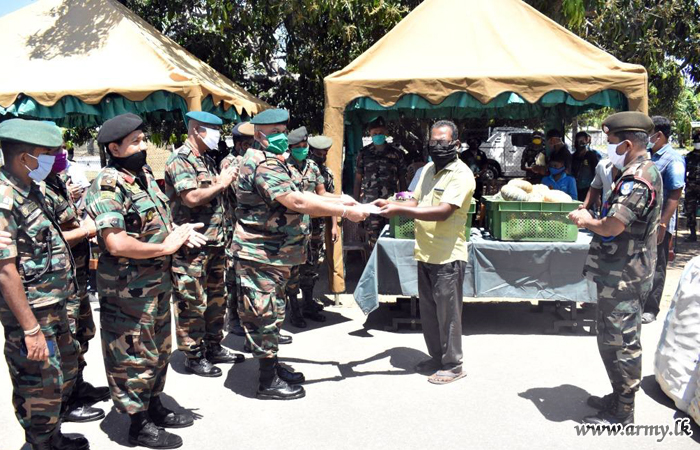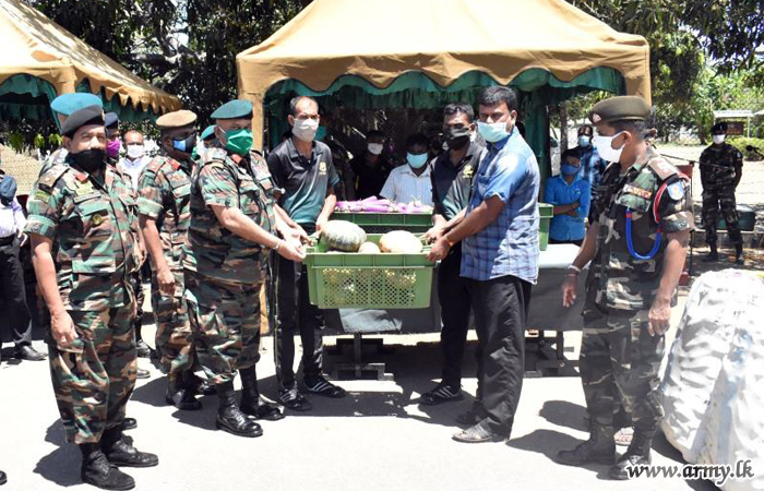 As a result of several rounds of previous discussions, held at the 64 Division HQ, the Commander, Security Forces-MLT Major General Deepthi Jayathilake initiated the gesture and bought 1304 kg of brinjals and 217 kg of pumpkin each kilo at Rs 30.