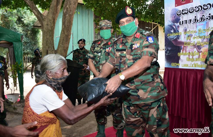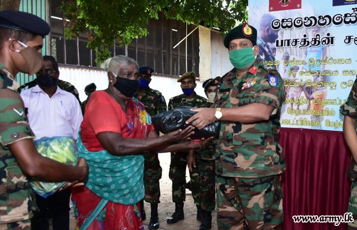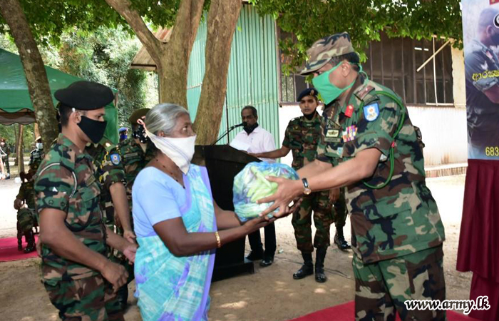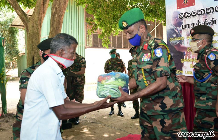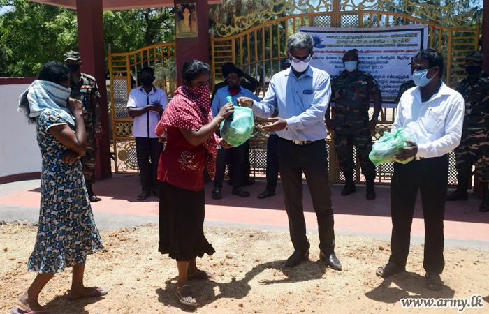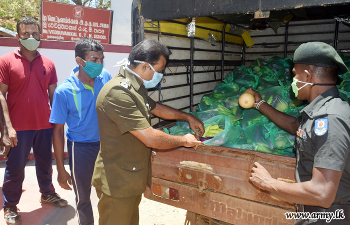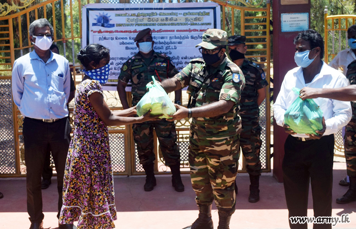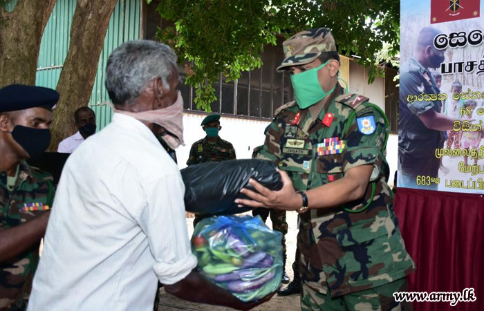 The fishing community in Mullattivu supported this charity gesture. 591 Brigade Commander, Colonel U.S.N.K Perera with his troops visited those areas and gave away those vegetable packs to the needy. In the meantime, 683 Brigade troops of the 68 Division under the Security Force Headquarters - Mullaittivu organized one more donation of vegetable bags among the needy on Thursday (23).