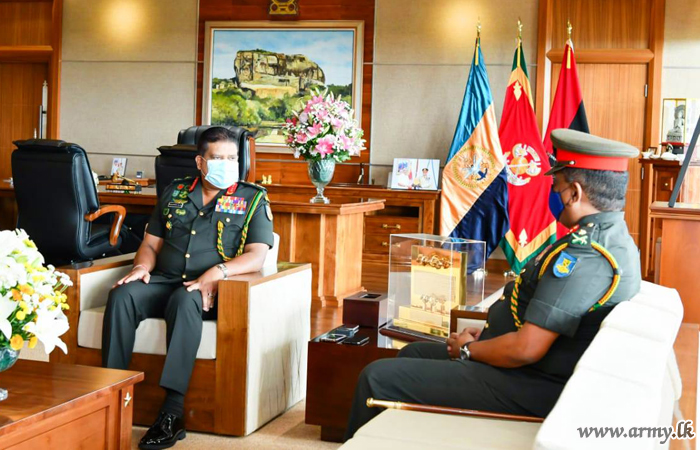Lieutenant General Shavendra Silva commended Major General Marasinghe’s contribution to the organization, spanning more than three decades and shared a few thoughts with him during the brief interaction at the Commander’s office.