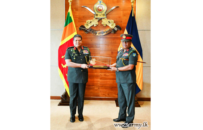 Appreciative of the services of retiring Major General A.I Marasinghe, General Officer Commanding 22 Division, Lieutenant General Shavendra Silva, Chief of Defence Staff and Commander of the Army invited him to his office this afternoon (22) and extended best wishes for his future endeavours after presenting him a special memento on the eve of his retirement from the Army.