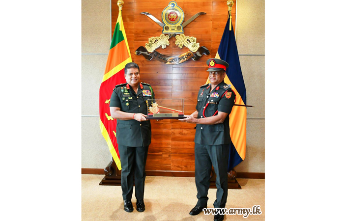On the eve of his retirement from the Army after a distinguished military career of more than three decades, Major General M. D Wijesundare, General Officer Commanding 66 Division received appreciation and best wishes for his future endeavours from none other than the Commander of the Army, Lieutenant General Shavendra Silva this afternoon (22) at the Army HQ.