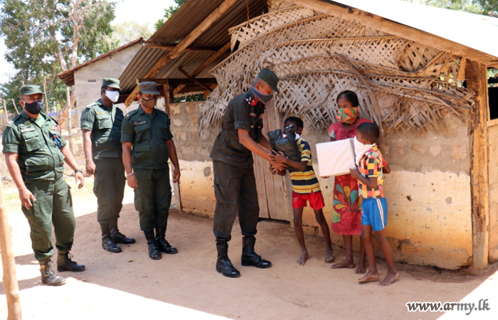 On the directions of the Commander Security Forces -MLT Major General Deepthi Jayathilake and under the supervision of the General Officer Commanding 68 Division Major General Jagath Rathnayake and Commander 682 Brigade Brigadier Senaka Kasthuri Mudali, the programme was organized by the 682 Brigade where 30 dry ration packs were distributed among needy families.