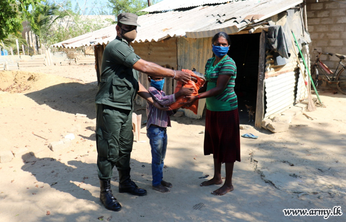 In another community welfare project under the Civil-Military Coordination (CIMIC), 682 Brigade Headquarters of the 68 Division of the SFHQ-MLT organized a donation of essential goods for needy families in Maligathivu & Puthukuduirippu-west in Mullaittivu on Thursday (23).