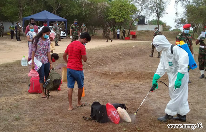 Upon completion of the quarantine process of more than 3 weeks, one more group of 93 quarantined individuals proceeded back home from the Army-managed Galkanda and Katukeliyawa Quarantine Centers (QCs) this morning (30) after necessary medical formalities and receipt of quarantine certificates.