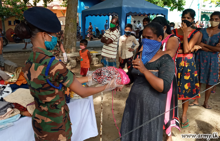 Troops of the 511 Brigade of the 51 Division under command to the Security Force HQ - Jaffna initiated a dry ration and clothes distribution programme to provide relief to the needy people, affected by COVID - 19 pandemic outbreak.