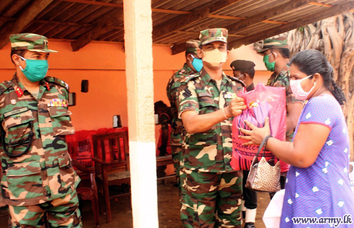 On the instructions of the General Officer Commanding of the 51 Division and under the guidance of Major General Ruwan Wanigasooriya - Commander Security Forces -Jaffna, those troops in the 511 actively took part in the distribution of those relief packs among the needy families.