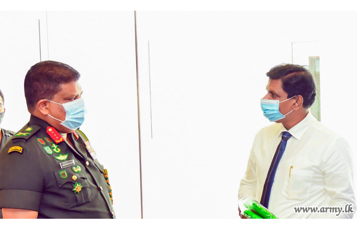 A representative group of officials of Polymer Manufactures & Re-cyclers Association of Sri Lanka (PMRA) offering their share of assistance at this critical stage of the epidemic this morning (29) met Lieutenant General Shavendra Silva, Head of the National Operation Centre for Prevention of COVID-19-Outbreak, Chief of Defence Staff and Commander of the Army at the Army HQ and donated a stock of 500 PPE overalls for use among service personnel and health workers, engaged in COVID-19 control work.