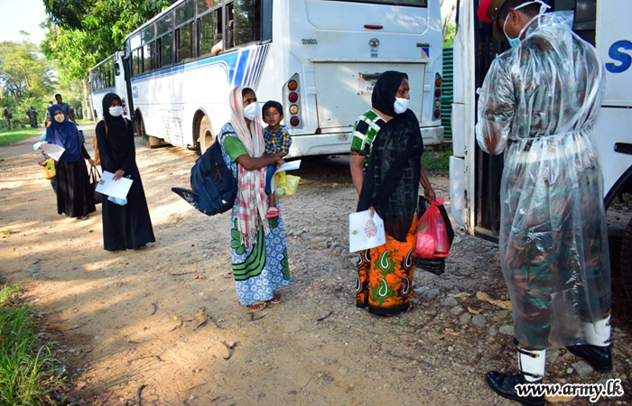 The returnees were provided meals and transport from the Army to their home towns in Beruwala, Maradana and Maliga Watta. The Commanding Officers of the QCs were there to see them off. |