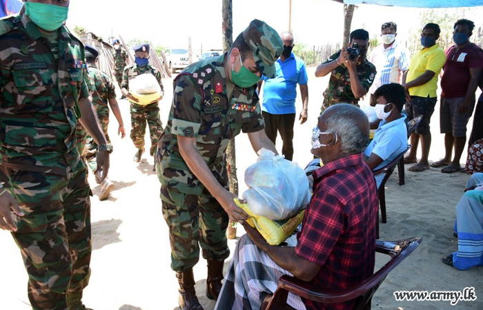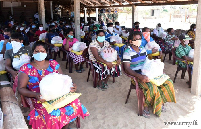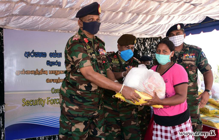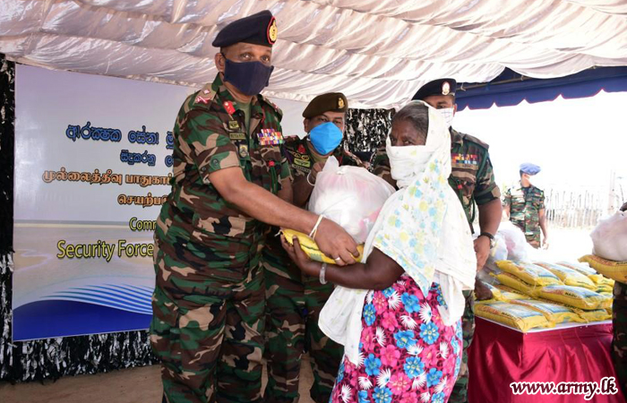 Commander, Security Forces-Mullaittivu, together with the General Officer Commanding of the 59 Division, Major General Priyantha Perera, 593 Brigade Commander Colonel Wasantha Palakumbura, Commanding Officer of the 19 Gemunu Watch, officers and other ranks joined the distribution. |