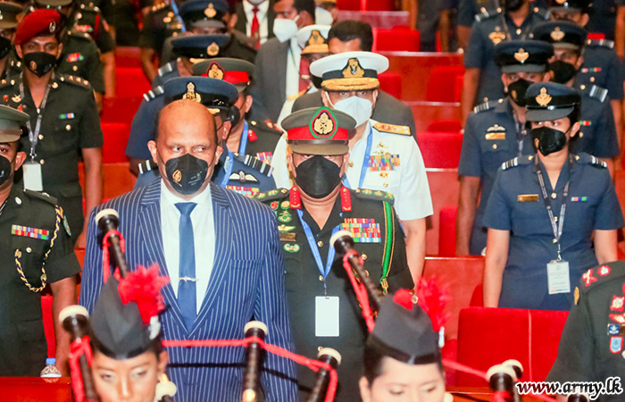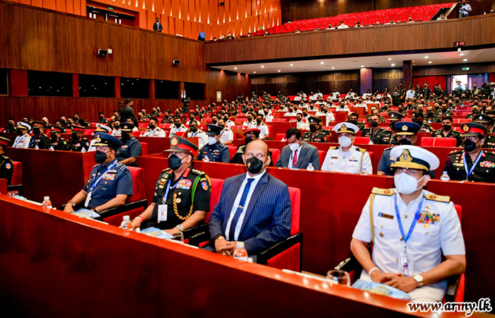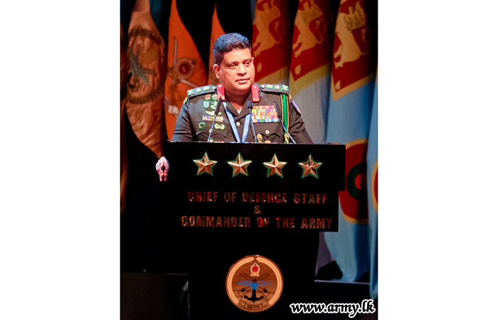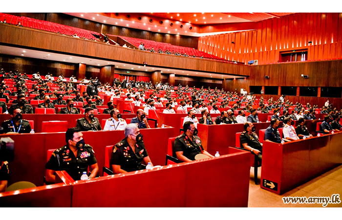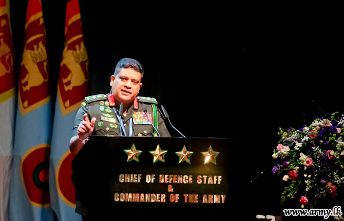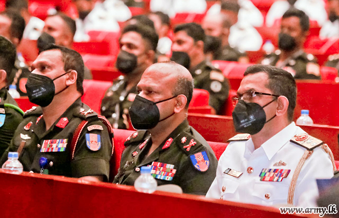 The Chief of Defence Staff, General Shavendra Silva, the brainchild behind the project's implementation delivered the welcome note, in which he highlighted importance of formulating policies and conducting joint training to ensure that the Armed Forces are rightly equipped with optimal operational capabilities. "Our Armed Forces have always been at the forefront of fostering peace, security and prosperity of our country amidst many turbulent environments. This proven capacity and capability have made a point that our Armed Forces are called upon to assist the nation whenever the country is at stake, irrespective of the nature of the challenge. Therefore, keeping our forces ready with competent and confident commanders at all levels is of utmost priority to employ them across the gamut of the conflicts to foster enduring national security, " he said.