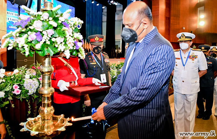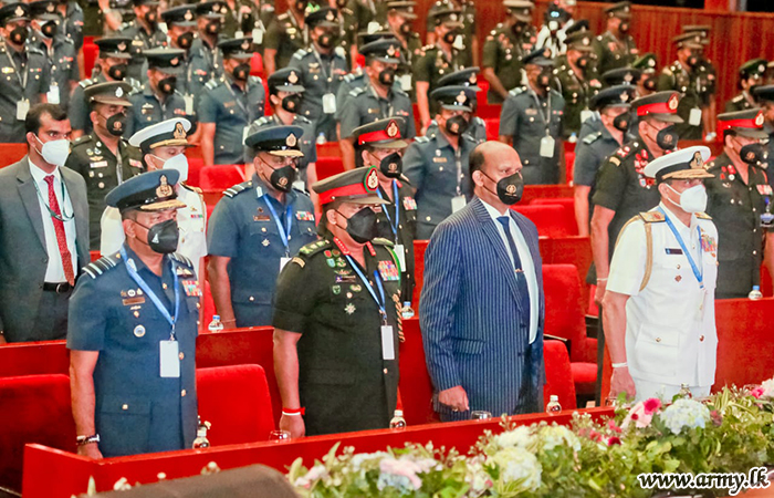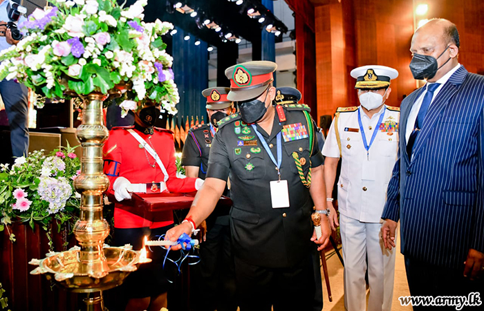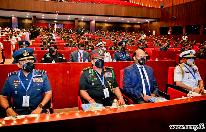 At the invitation of General Shavendra Silva, Chief of Defence Staff and Commander of the Army, the Secretary to Ministry of Defence, General Kamal Gunarathna (Rtd) as the Chief Guest graced the inauguration and delivered the keynote address. Lighting of the traditional oil lamp jointly by the Chief Guest, Chief of Defence Staff and Commander of the Army, Navy and Air Force Commanders, few distinguished guests and representative Tri service attendees set the stage for observance of the customary two-minute silence in memory of fallen War Heroes. A documentary video screened afterwards narrated the synopsis of the objectives of the whole symposium and its composition with scholarly inputs throughout the day.