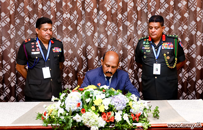 Towards the end of the keynote address, General Shavendra Silva awarded a special memento to the day's Chief Guest, General Kamal Gunarathna (Rtd) in appreciation of his contribution to the day's forum. After leaving a few thoughts in the visitors' book, the Secretary Defence sat for a group photo with those participants, bringing ceremonial inaugural session to end.