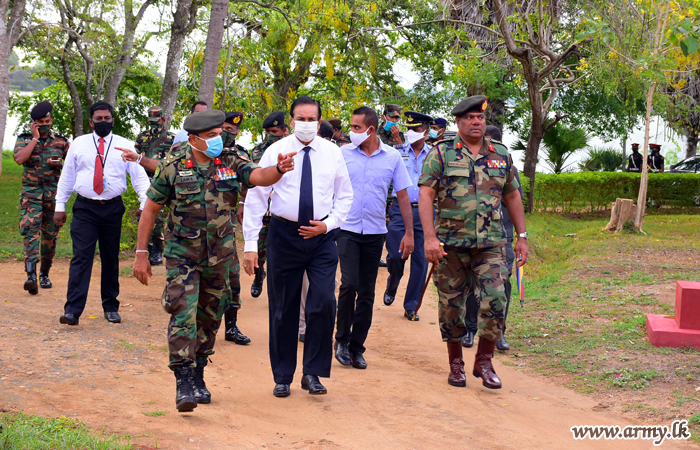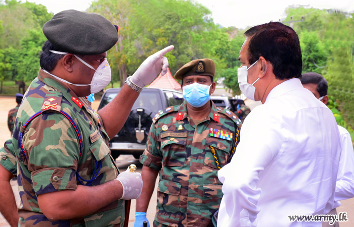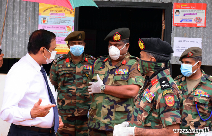 The new special Presidential Task Force (PTF), appointed by HE the President to tackle health security at camps of the armed forces, headed by Western Province Governor and Marshal of the Air Force Roshan Goonatileke, together with Major General Keerthi Costa, Commander Security Forces – Central, Major General Prathapa Thilakaratne, General Officer Commanding, 12 Division and 122 Brigade Commander visited 12 Division,122 Brigade 3 Sri Lanka National Guard and Youth Corps Training Centre –Lunugamwehera on Wednesday (6).