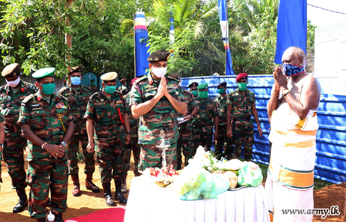 The Jaffna SF Commander, together with a few senior officers and family members of the potential recipient laid the foundation-stone at the auspicious minute after Hindu religious observances.