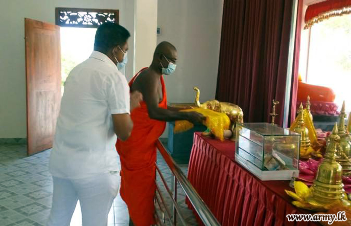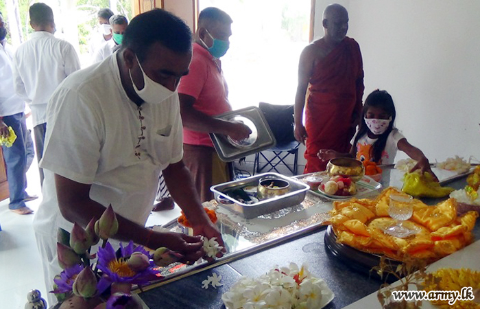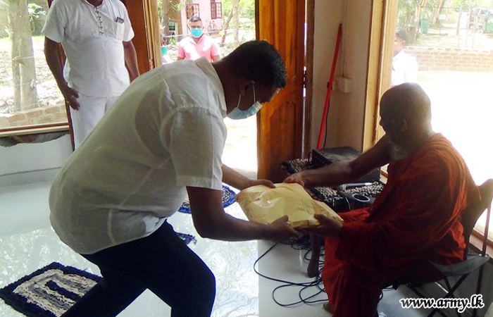 Arranged separately on the directions of the Commander Security Forces -East Major General Rasika Fernando, the alms were offered to members of the Maha Sangha at the Buddhist Centre Welikanda, Kadawathmaduwa Temple, Maganthota Rajamaha Viharaya, Susiragama Temple, Sewanapitiya and Maithreegama Temples in keeping with the prevailing social distancing health guidelines. |