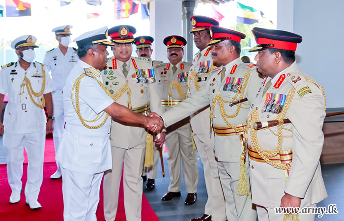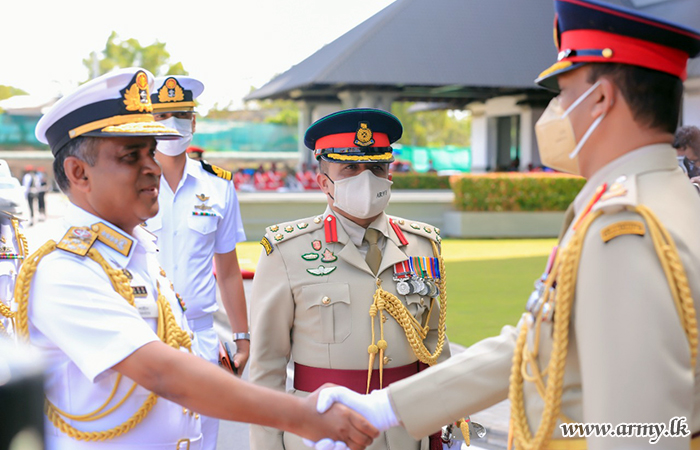 The Parade Commander, Captain E.T.K Ediriweera after reporting it accompanied the day’s Chief Guest, together with the Adjutant General for review of the dignified military honours before he was ushered to the special dais to take the salute.