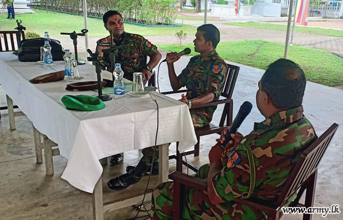 Directorate of Psychological Operations taking one more initiative to promote the well-being of troops staying at separation centres or those serving in separation centers organized a series of informative lectures with Ven Diyasenpura Vimala Thero at Corps of Engineer Service - Borupana, Colonel Dr R.M.M Moneragala and his team at the Panagoda Bodhirajaramaya and Major T.P.J.K Alwis at the Institute of Peace Support Operations Training Sri Lanka (IPSOTSL) at Kukuleganga on Saturday (9).