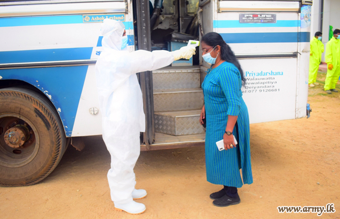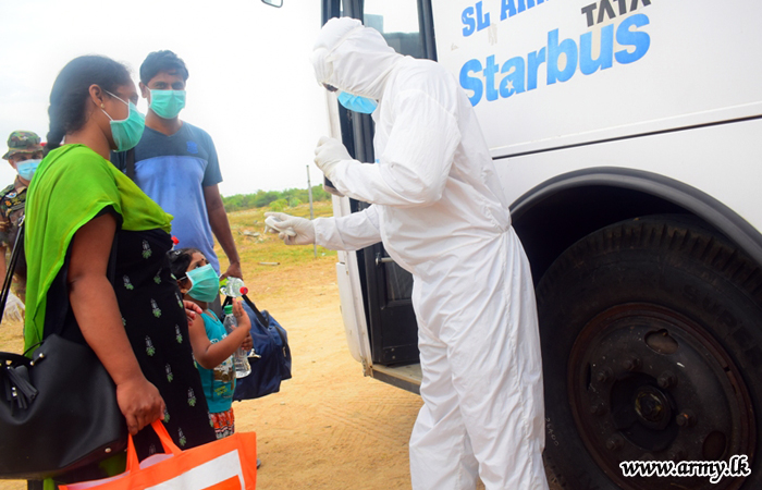 Upon completion of the quarantine process of more than 3 weeks, one more group of 408 individuals proceeded back home from the Army-managed Punani (94), Mullaittivu (129), the Air Force- managed Iranamadu (175) and the Navy-run Boossa (10) Quarantine Centres (QC) last evening (10) and this morning (11) after necessary medical formalities and receipt of quarantine certificates.