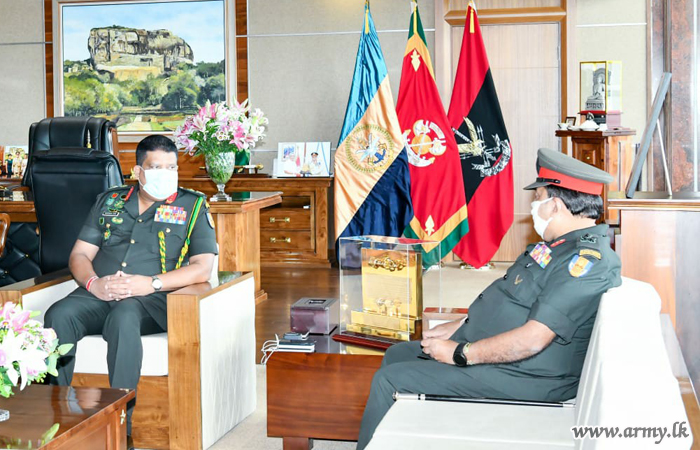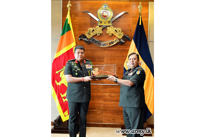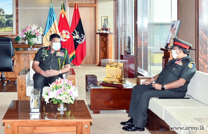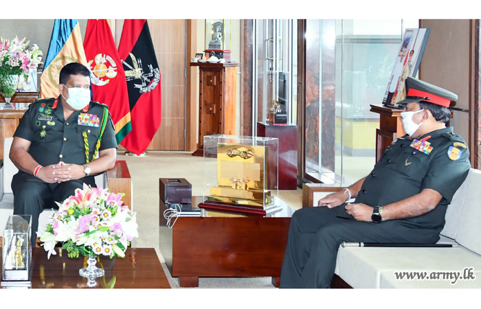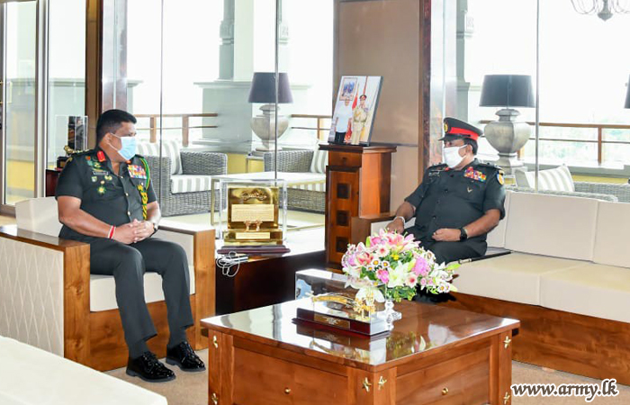 Major General Manoj Mudannayake, Director General Infantry of the Army and Colonel of the Regiment, Sri Lanka Sinha Regiment, one of the Army-groomed dedicated Senior Officers on the eve of his retirement from the Army, had a courtesy audience with Lieutenant General Shavendra Silva, Chief of Defence Staff and Commander of the Army at the latter’s office in the Army Headquarters on Tuesday (12).