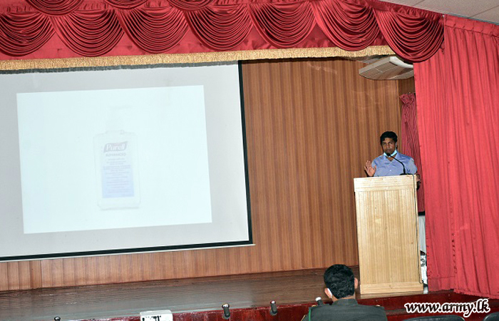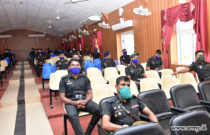 An awareness lecture on ‘Prevention from COVID-19 Pandemic’ got underway for the benefit of the troops of the Security Force Headquarters - Kilinochchi on Wednesday (13).