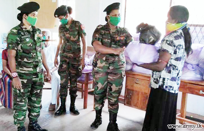 Troops of 7 Sri Lanka Army Women's Corps troops under the Security Force HQ-Jaffna considering prevailing hardships of the civilians due to virus threat recently distributed dry and fresh ration packs to 50 needy families in Mylladi and Urani areas in Jaffna.