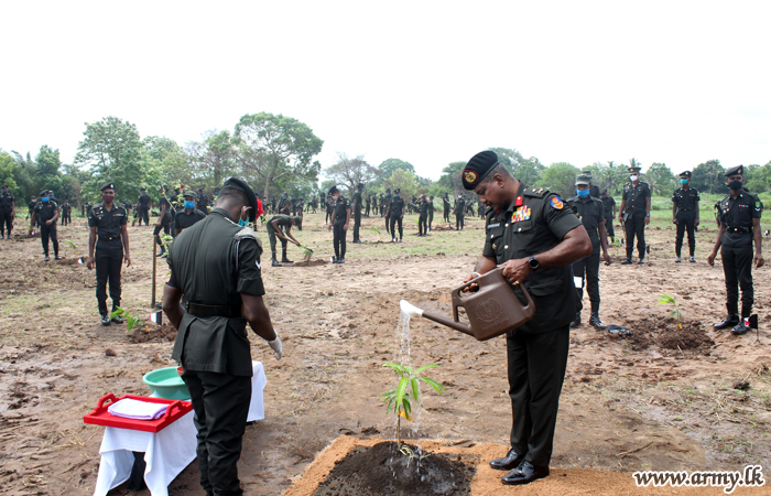 Chief of Staff of the Army and Colonel Commandant of the Sri Lanka Armoured Corps (SLAC) Major General Sathyapriya Liyange during a visit to Anuradhapura SLAC formations participated in the ceremonial commencement of mango tree planting at the SLAC Training Centre on Monday (18) to coincide with the ongoing “Thuru Mithuru Nawa Ratak” concept of the Commander of the Army.