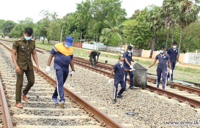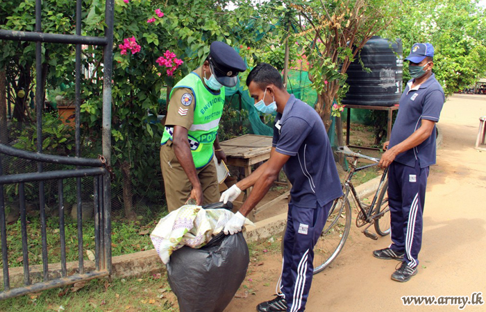 7 Sri Lanka Light Infantry (SLLI) Regiment troops at the request of the Medical Officer of Health - Karachchi, carried out a cleaning campaign against Dengue in Kilinochchi town on Friday (22) under the guidance of Major General Pradeep de Silva, General Officer Commanding, 57 Division under the supervision of the Commander 571 Brigade.
