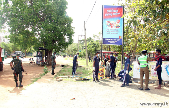 A group 26 Army personnel including an officer cleaned the Karachchi town area in order to avoid any outbreak of Dengue with the start of heavy rains in the midst of COVID-19 epidemic. |