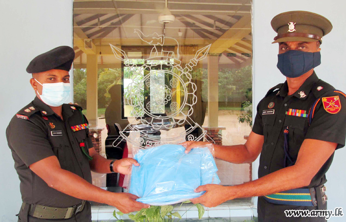 The Executive Officer of the Red Cross Society, Mrs Kumari Kotelawala met the Commanding Officer of 2 (Volunteer) SLAGSC at Panagoda Army Cantonment and handed over the stock for distribution among tri-service personnel, engaged in COVID-19 control and quarantine work.