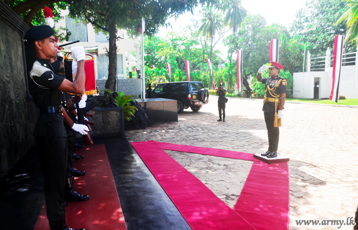 The new Colonel Commandant was warmly received by Brigadier M.S Devapriya, Centre Commandant, SLAC, together with Lieutenant Colonel S.J Samarasinghe, Commanding Officer, 1 SLAC at the main entrance. A Guard Turnout in accordance with military formalities saluted him at the entrance to HQ.