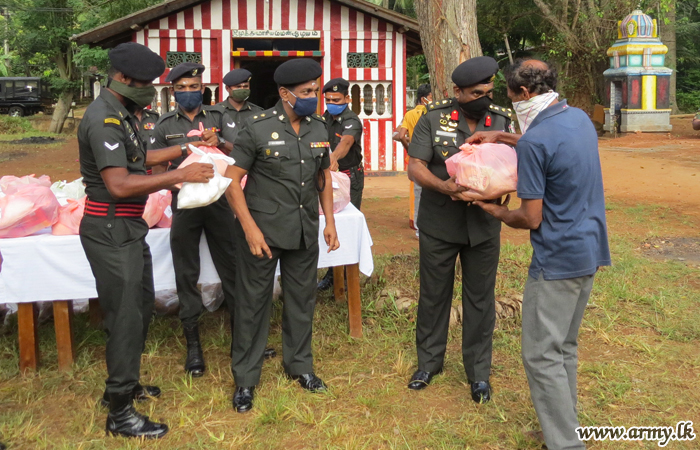 Regimental Headquarters troops of the Special Forces (SF) in Matale in close collaboration with the SF Seva Vanitha Unit, recently took steps to donate packs of food items, dry rations and vegetables among 23 needy families in the 29th Sector in the Elkaduwa Estate, Elkaduwa.