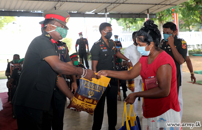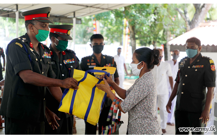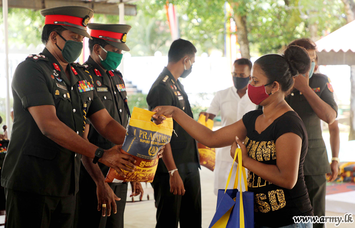 On the guidelines given by the Chief of Defence Staff and Commander of the Army Lieutenant General Shavendra Silva, the Army Buddhist Association and the Security Force HQ-West on account of the forthcoming 'Poson' commemoration jointly distributed 500 dry ration packs among poor families and Buddhist temples in the area on Wednesday (3).
