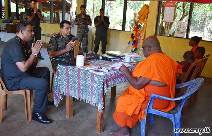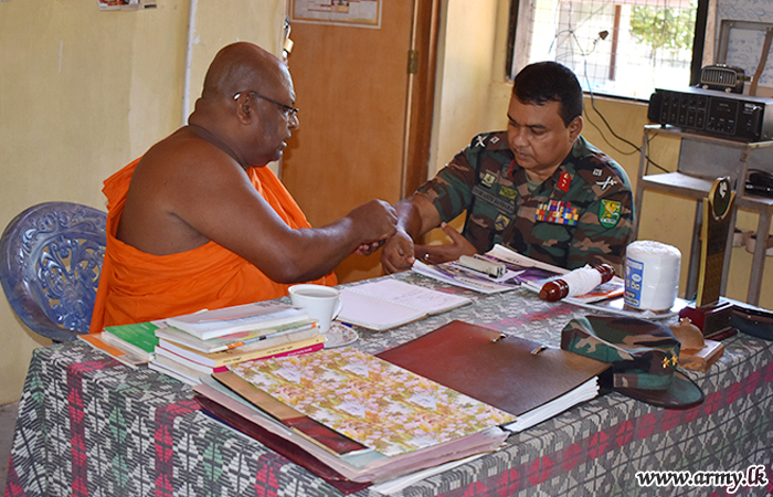Major General A.A.I.J Bandara, General Officer Commanding (GOC) of the 54 Division during a visit to the Sri Vijaya Thilakaramaya buddhist temple in Mannar gave away a stock of dry ration packs among the needy on Wednesday (3).