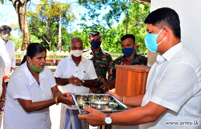 65 Division troops under command to the Security Force HQ- Kilinochchi added their share to the commemoration of the Poson festival – 2020 under the guidance of Major General D.M.H.D Bandara, General Officer Commanding, 65 Division on Friday (5).