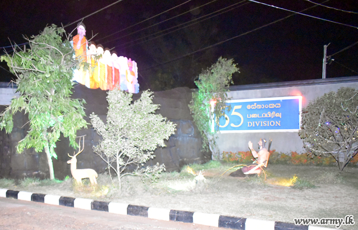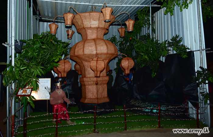 A colourful replica of the 'Missaka Pauwwa' and colourful lanterns adorned the main entrance to the Division Headquarters before the day was made more meaningful by screening the popular Buddhist film, “Paththini” as dusk fell.